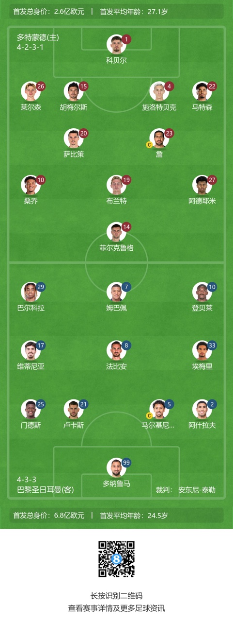 05月02日消息 欧冠半决赛首回合,多特主场迎战巴黎比赛即将打响。赛前首发出炉。