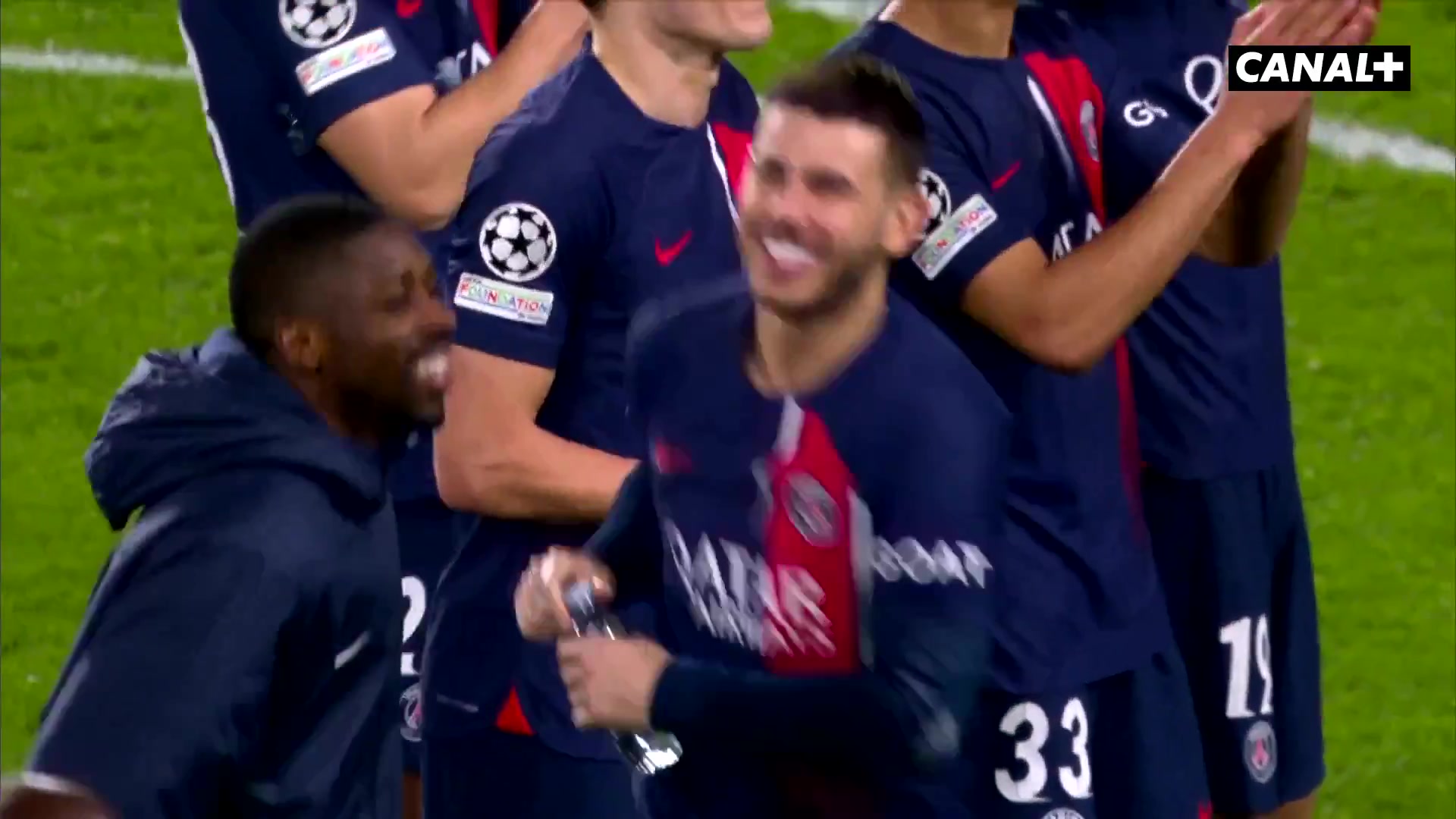 赛后巴黎众将开心庆祝,登贝莱跳来跳去,还被卢卡斯-埃尔南德斯泼了三次水。