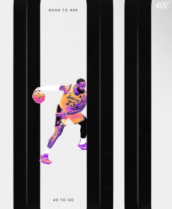 3月1日消息 今天,湖人官推晒出了詹姆斯即将达到四万分的海报,并写道:“还有40分到达四万分。”