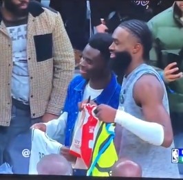 本场比赛,阿森纳球员萨卡现场观战,赛后他和杰伦-布朗交换了球衣。