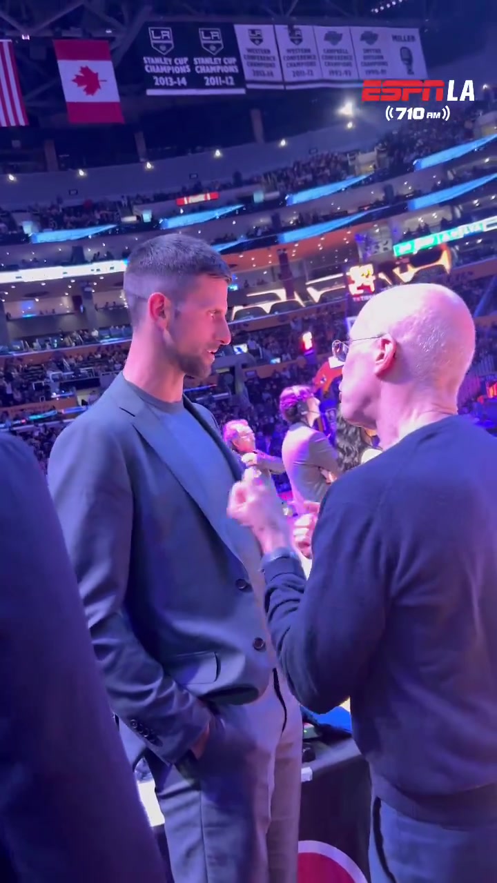 大咖来啦!网坛巨星德约科维奇现场观看湖人勇士一战