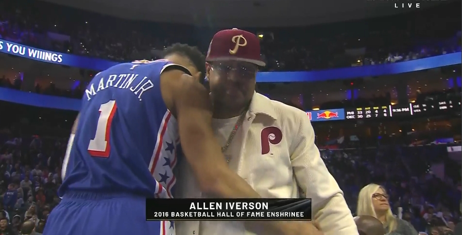 费城宠儿!艾弗森观战76人VS雷霆 现场依旧掌声雷动????