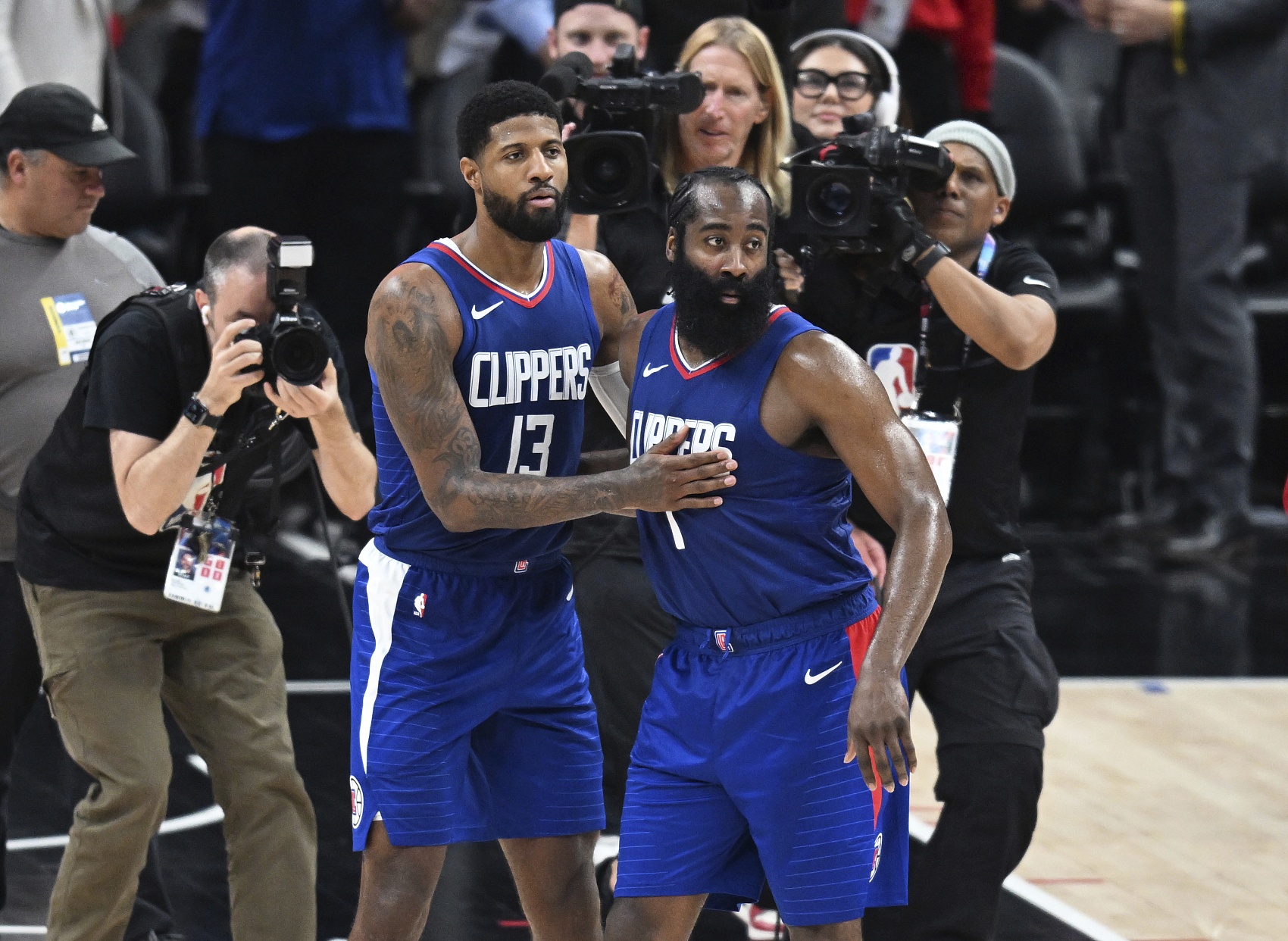 奥尼尔在赛前直播节目中谈到了哈登,奥尼尔表示:“詹姆斯-哈登必须振作起来,他想要赢得冠军,他必须成为快船进攻的重要组成部分,他必须保持稳定的发挥,没有不敬的意思,但他和保罗-乔治有时会在季后赛中消失。”
