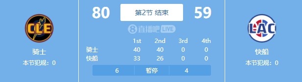 上半场,快船防守端表现极差,客场背靠背的骑士万箭齐发,半场轰下80分,半场打完快船59-80落后21分。