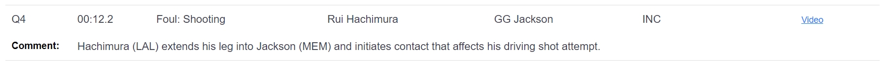 12.2秒,八村塁伸腿阻挡了GG-杰克逊的突破上篮,这是一次阻挡犯规,裁判漏判。