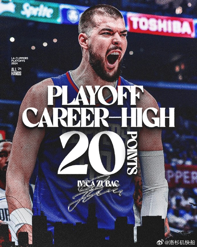赛后,快船官方晒出海报显示,祖巴茨单场得分创了其个人职业生涯新高,此前最高是18分(2019年4月19日)。