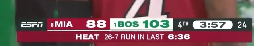 凯尔特人强度骤降!热火轰出一波26-7 追到只剩15分!