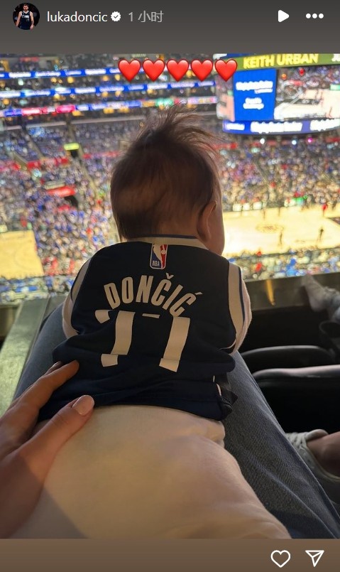 东契奇今天在INS晒出了自己的女儿加布里埃拉现场观战的图片。