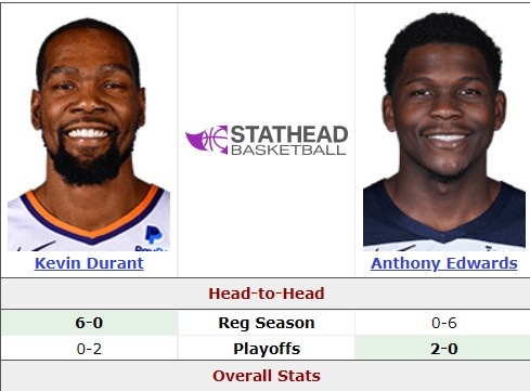 杜兰特生涯常规赛面对爱德华兹战绩6胜0负 但季后赛0胜2负????