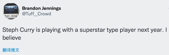 他写道:“库里下赛季会联手一名超巨级别的球员,我深信。”