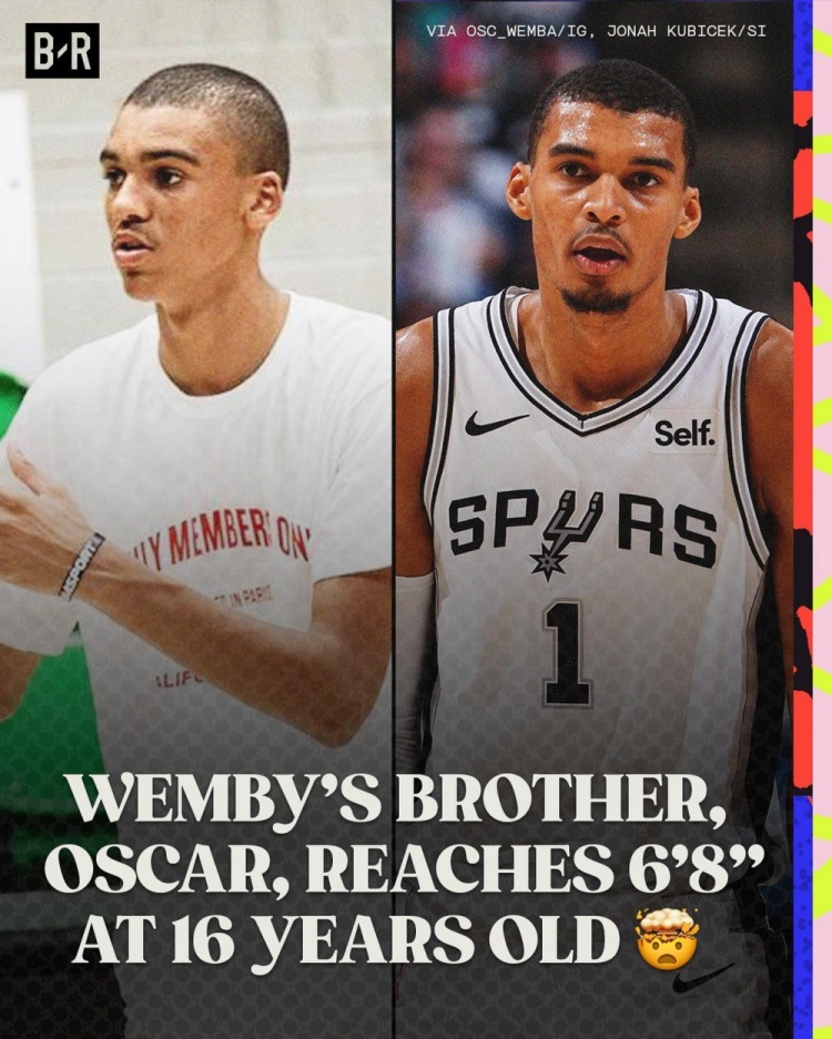 文班亚马的弟弟奥斯卡-文班亚马今年16岁,目前身高已经达到了6英尺8英寸(2米03),他目前效力于法国联赛LDLC ASVEL的U21队,他将有资格在2026年参加NBA选秀。