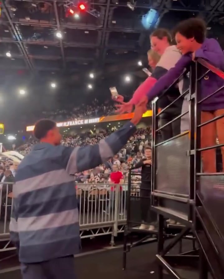 文班亚马现身球场后引起家乡球迷热烈欢呼。