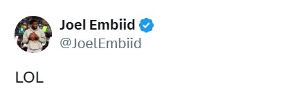 比赛最后时刻,特纳被吹掩护犯规,卡莱尔挑战失败。对此,恩比德评论道:“哈哈哈。”