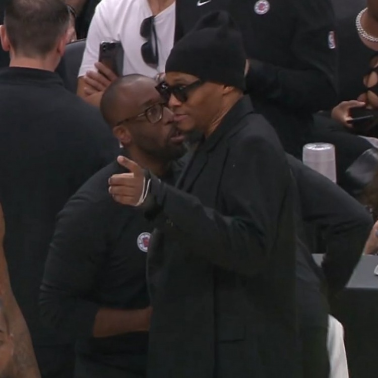 黑帽子黑墨镜!威少来到场边看球 一身黑色装扮十分酷炫!