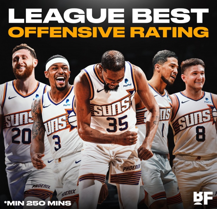 KD/布克/比尔/阿伦/努尔基奇!太阳这阵容进攻效率全联盟第一