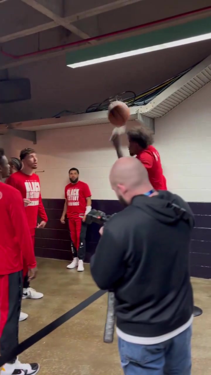 搁这玩儿呢!赛前申京和杰伦-格林“头球热身”