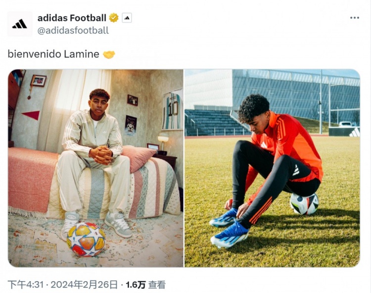 2月26日消息 阿迪达斯官方宣布,亚马尔已经与该品牌签约。