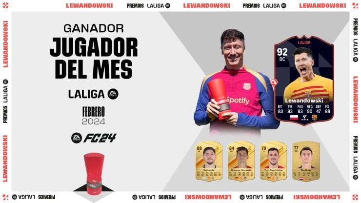莱万击败巴尔韦德、略伦特、布季米尔、贝尔奇切等人,成功当选西甲2月最佳球员。