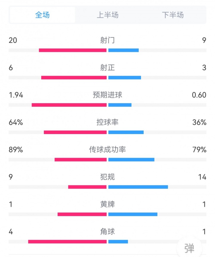3月9日消息 本轮西甲,巴萨主场1-0击败马洛卡。双方全场数据对比如下↓
