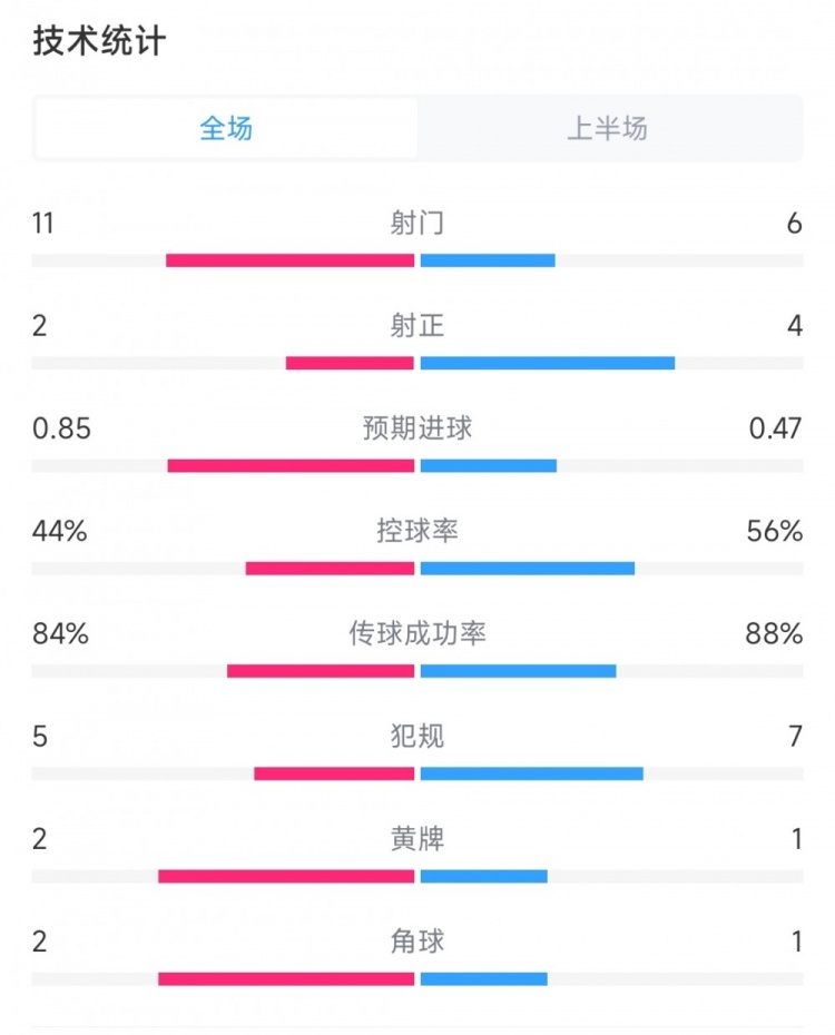 预期进球——0.85比0.47