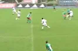 去年9月在皇马C队3-0击败特里巴尔的比赛中,18岁皇马C队中场安东尼奥-大卫在中圈附近拦截皮球后不停顿直接起脚吊射,由于特里巴尔门将站位靠前,所以未能将球扑出。