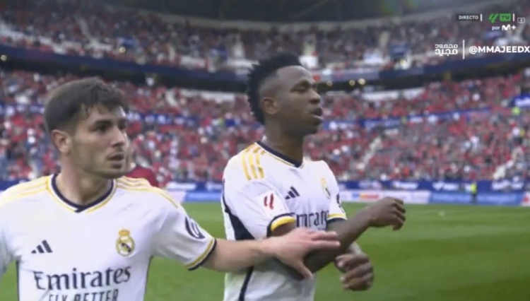 3月17日消息 皇马在西甲第29轮客场4-2击败奥萨苏纳,比赛中维尼修斯因被犯规后不满,抱怨裁判判罚被出示黄牌。