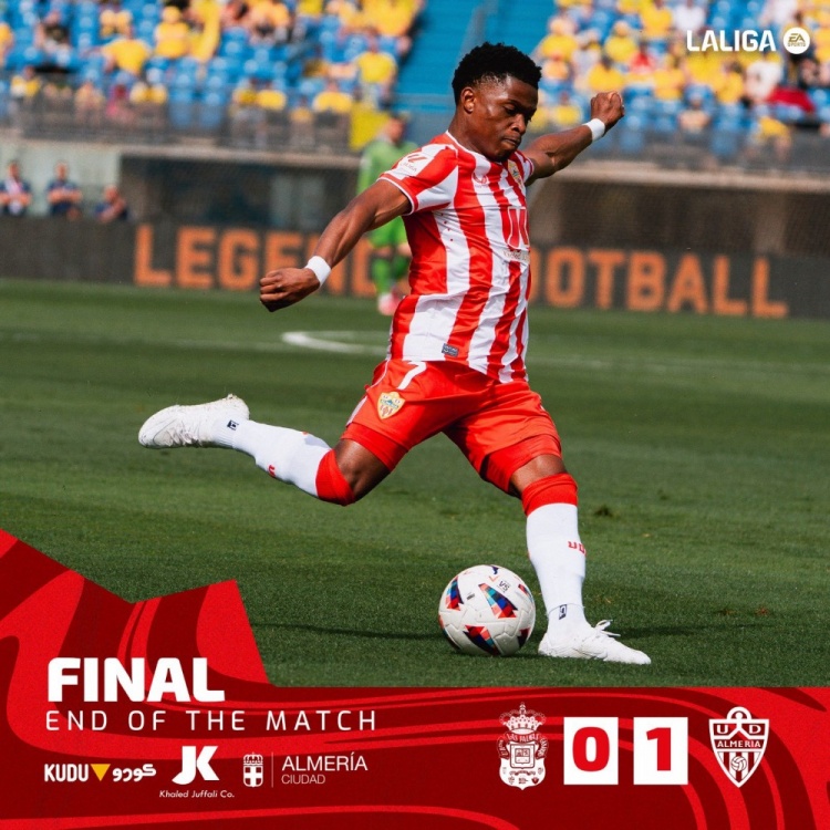 阿尔梅里亚终于取得了本赛季西甲的第一场胜利,他们成为了五大联赛最后一支在联赛取得首胜的球队。