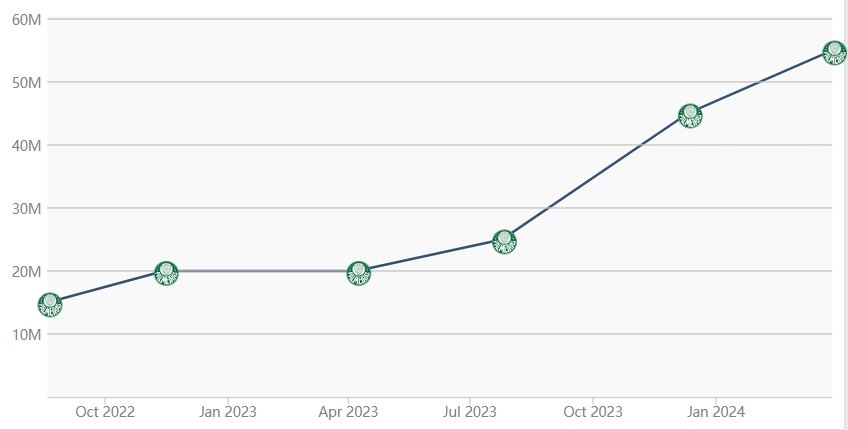 03月28日消息 德国转会市场更新巴甲球员身价,帕尔梅拉斯17岁前锋恩德里克身价涨至5500万欧元。