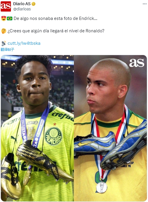 《阿斯报》:恩德里克这张照片看起来很眼熟,你认为他未来会达到大罗的水准吗?