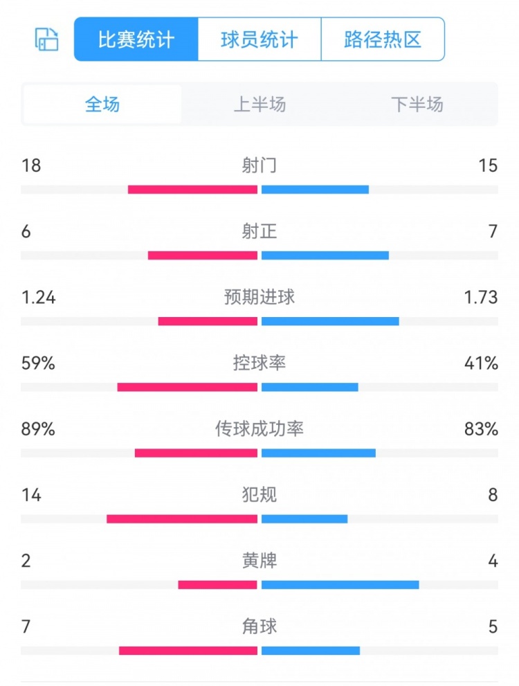 4月11日消息 欧冠1/4决赛首回合,巴黎主场2-3巴萨。双方全场重点数据对比如下↓(主队巴黎在前)