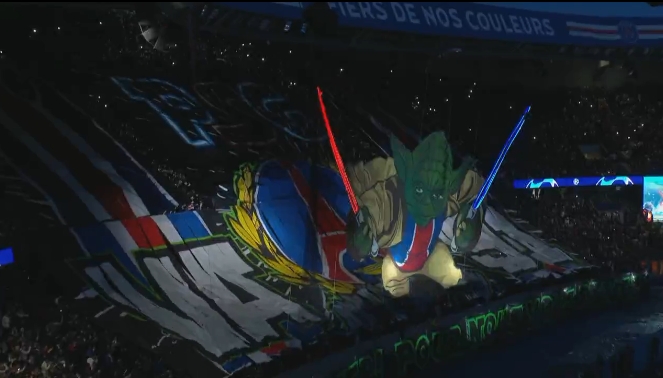 气氛热烈!巴黎主场打出《星球大战》“尤达大师”TIFO