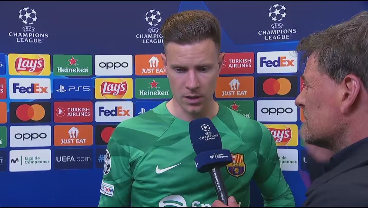 赛后巴萨门将特尔施特根谈到这次判罚,他表示裁判没问题:那一下如果裁判吹哨了,那就得是红牌。我看了回放,没问题,他可以吹哨。