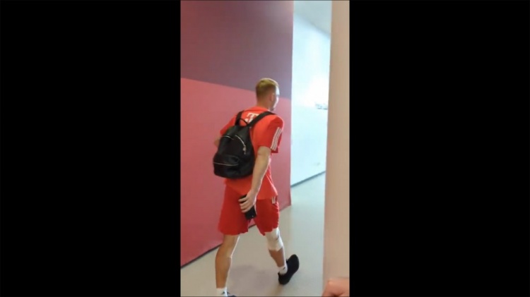 4月28日消息 据记者Patrick Strasser报道,德里赫特赛后缠着绷带离开球场。