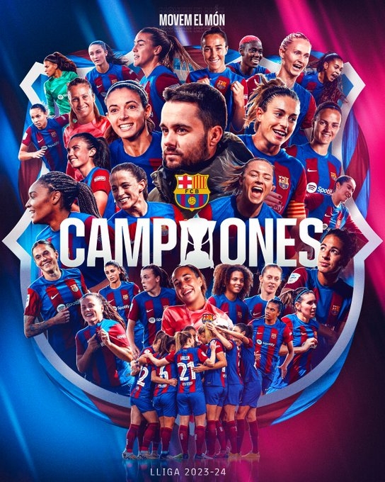 巴萨女足完成西甲五连冠,夺得队史第9座联赛冠军。