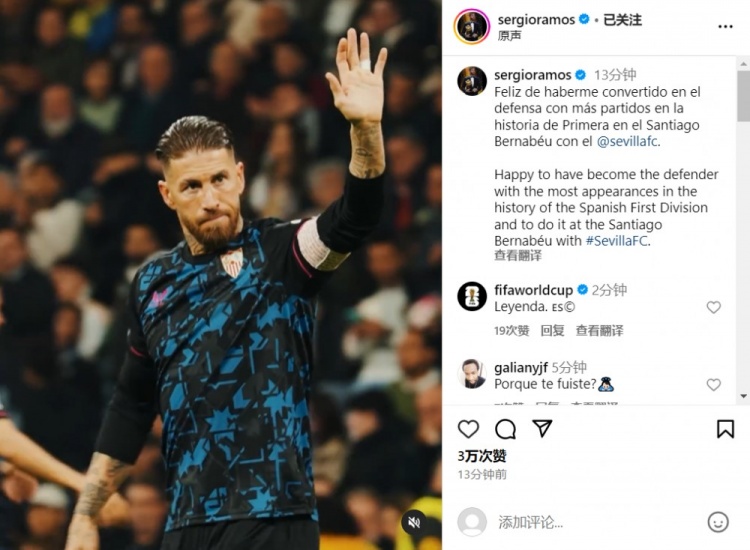 524场!拉莫斯:很高兴在伯纳乌达成西甲历史出场最多后卫里程碑