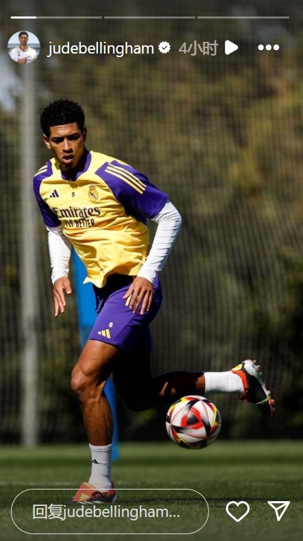 即将复出?贝林厄姆社媒晒有球训练照