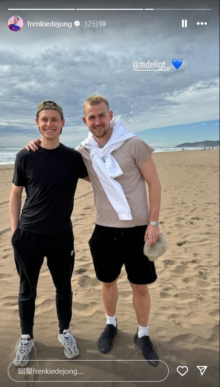 曾经的阿贾克斯双子星!德容晒与德里赫特在沙滩上的合照