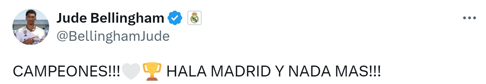 生涯联赛首冠!贝林厄姆庆祝:冠军!!!???????? HALA MADRID