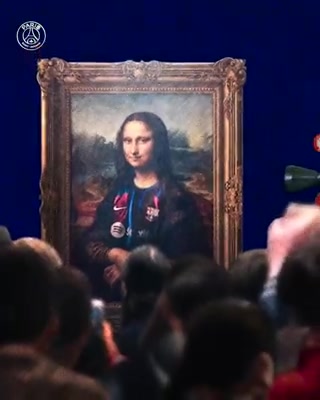 官方整活最为????巴黎社媒将身穿巴萨球衣的蒙娜丽莎挂墙上
