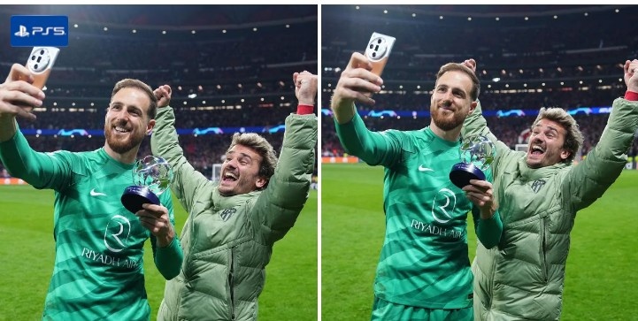 ????奥布拉克手握全场最佳奖杯自拍,格列兹曼搞怪乱入