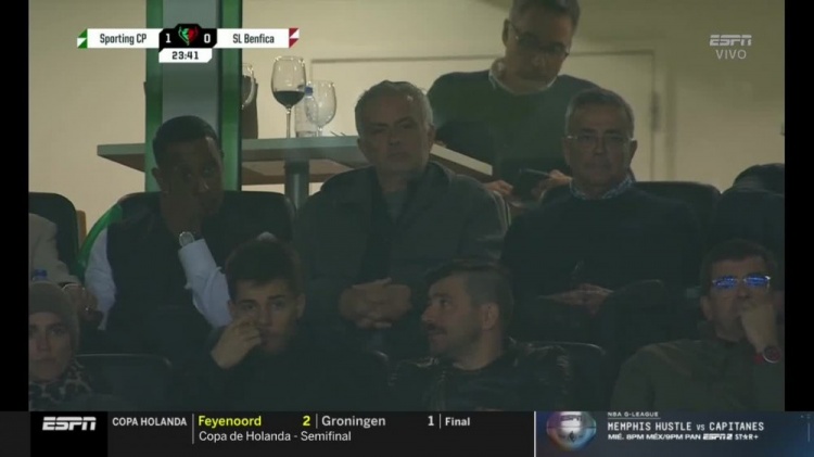 媒体在看台上拍摄到了穆里尼奥的身影,他来到现场观看这场葡萄牙杯比赛。穆帅首次担任主帅就是在2000年执教本菲卡,带队战绩6胜3平2负。