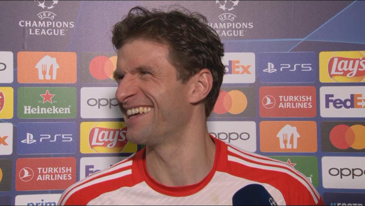 赛后穆勒接受了媒体的采访,他说道:“我们当然非常高兴。我们只想享受这种感觉——不管今天或昨天报纸上写了什么,球队今天的表现绝对配得上这样的结果。”