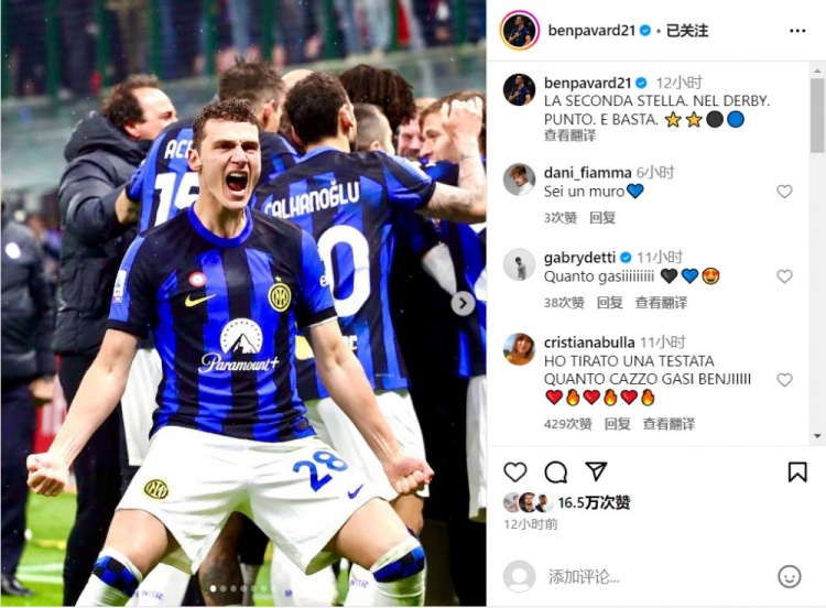 帕瓦尔晒出自己的庆祝照,并配文:在德比战中赢下第二颗星,这已经足够了⭐️⭐️⚫️