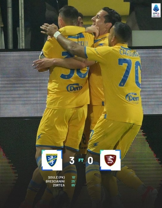 4月27日消息 本轮意甲,萨勒尼塔纳0-3客负弗洛西诺内,提前4轮降级。