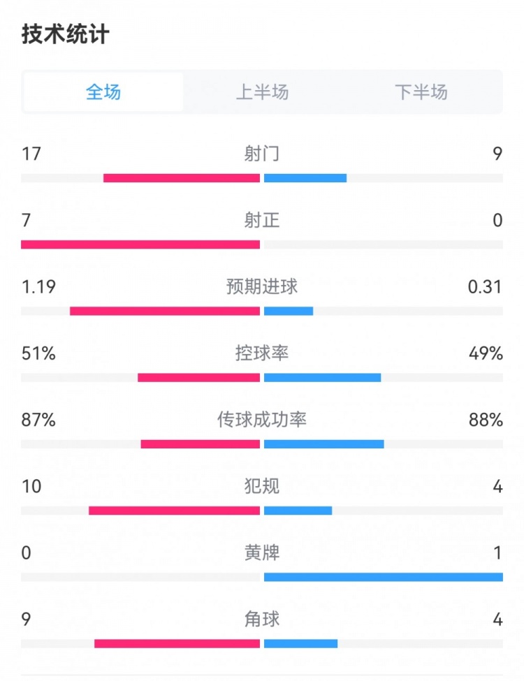 4月28日消息 本轮意甲焦点战,尤文主场0-0闷平米兰。双方全场重点数据对比如下↓