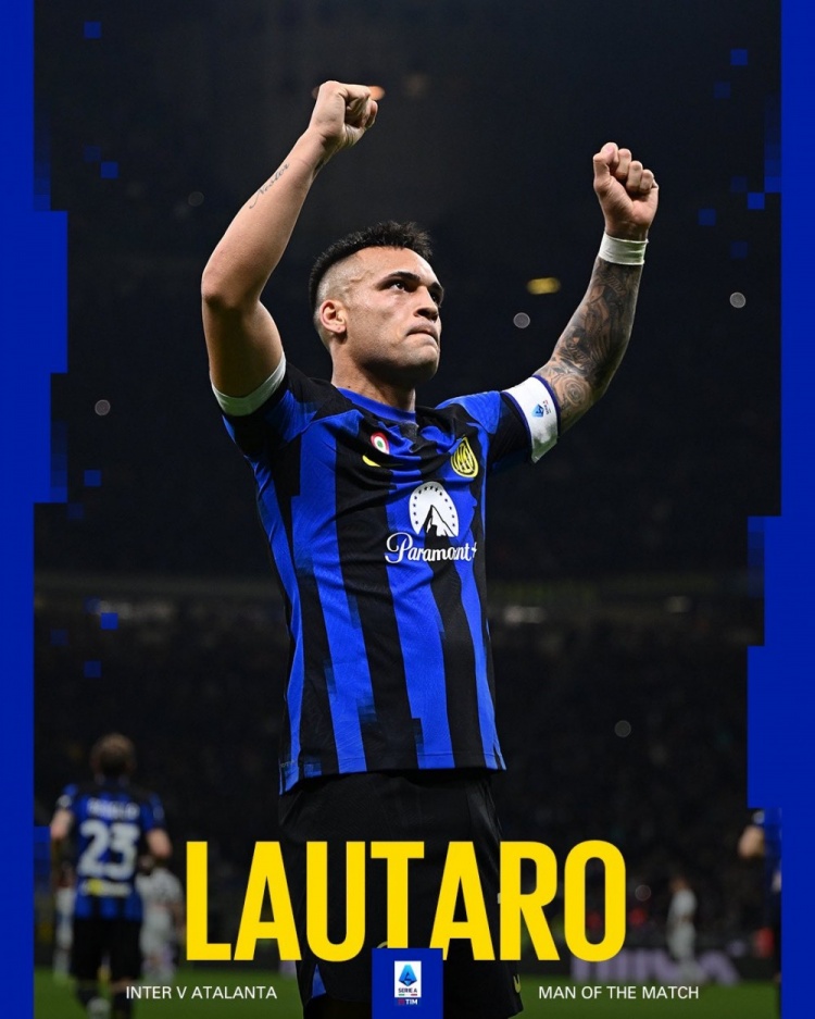 1球1门柱!国米官方:劳塔罗当选4-0亚特兰大一役队内最佳球员