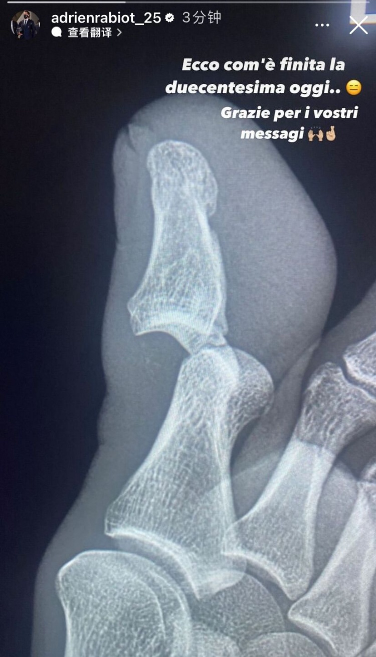 触目惊心!拉比奥特晒脚趾脱臼X光:200场里程碑就这样结束了