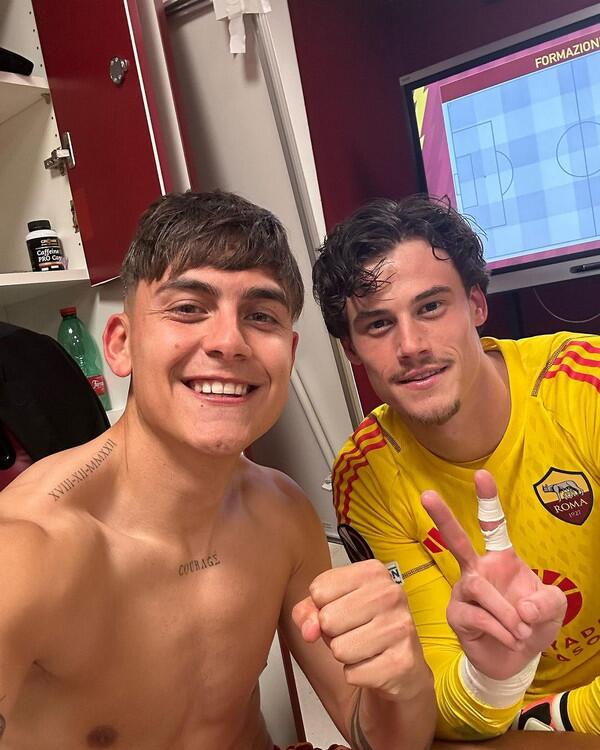 迪巴拉Ins:与罗马门将合影庆祝晋级,称赞对方是“我们的英雄”