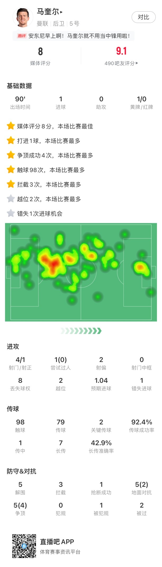 触球:98次(本场最多)