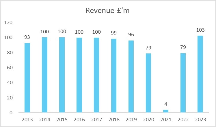 在获得欧战资格后,阿森纳的比赛日收入恢复到了1亿英镑以上的水平,2023-24赛季可能会再次上涨,因为欧冠的门票价格可能会高于欧联杯,而且球迷门票费用整体出现上涨。